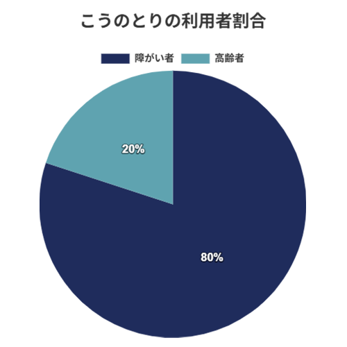 こうのとり株式会社では、ご利用者の約8割が障がいのある方となっており、行動援護の支援ニーズは年々高まっています。
